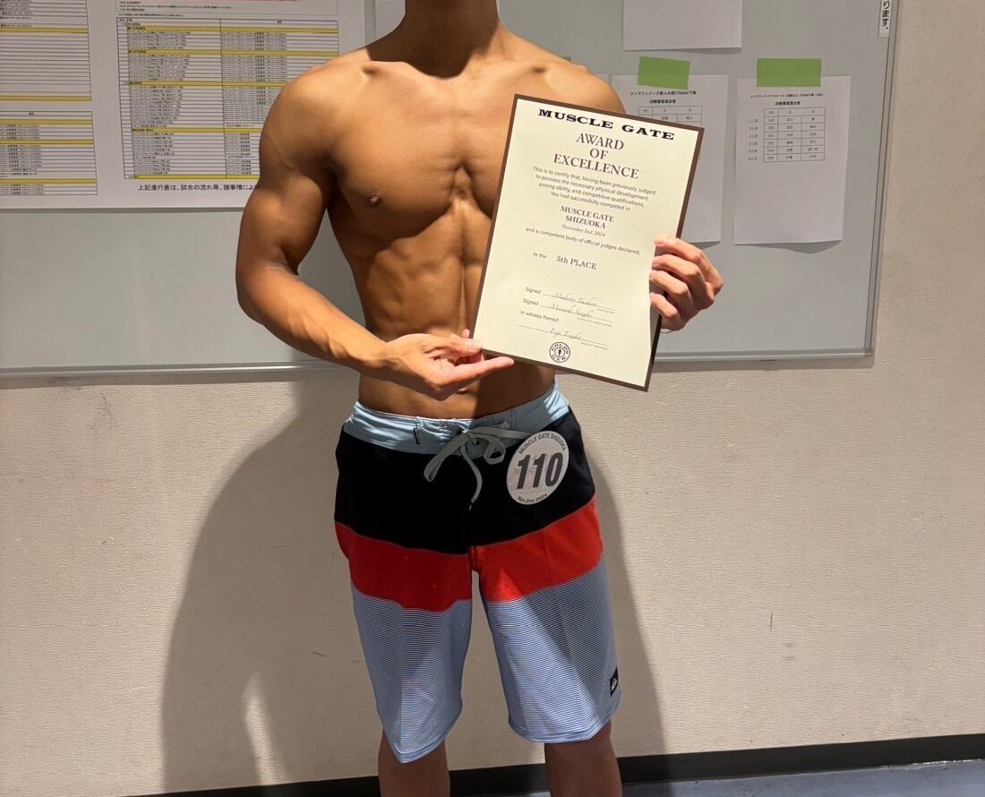 トレーニング指導を受けてから着実に成長し、興味があったフィジーク大会へ出場することが出来て嬉しかったです。